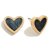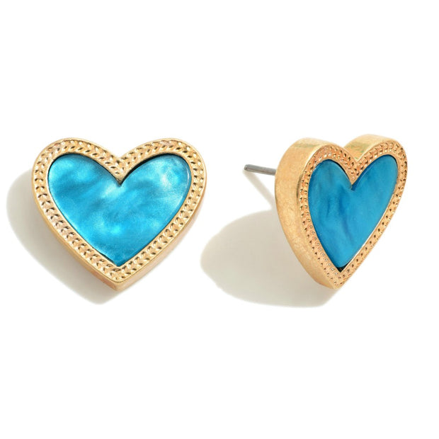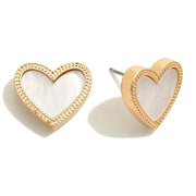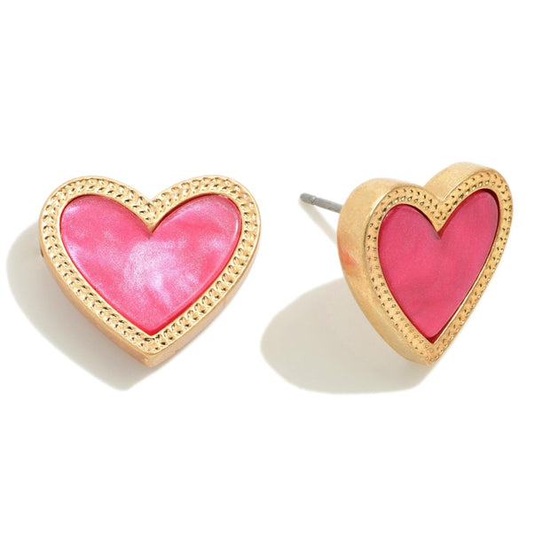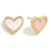 Metal Tone Heart Stud Earrings With Pearlescent Center