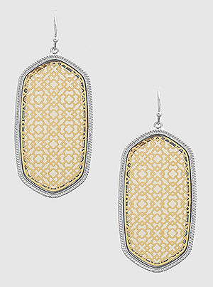Two Tones Ornate Stencil Geometric Shape Drop Earrings